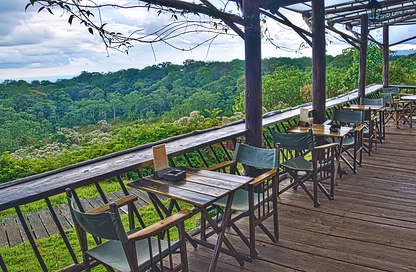 The Shimba Hills Lodge is a coastal alternative to the famous Tree Tops. Throughout its construction emphasis was upon natural materials with cedar wood dominating resulting in a warm and relaxing interior.